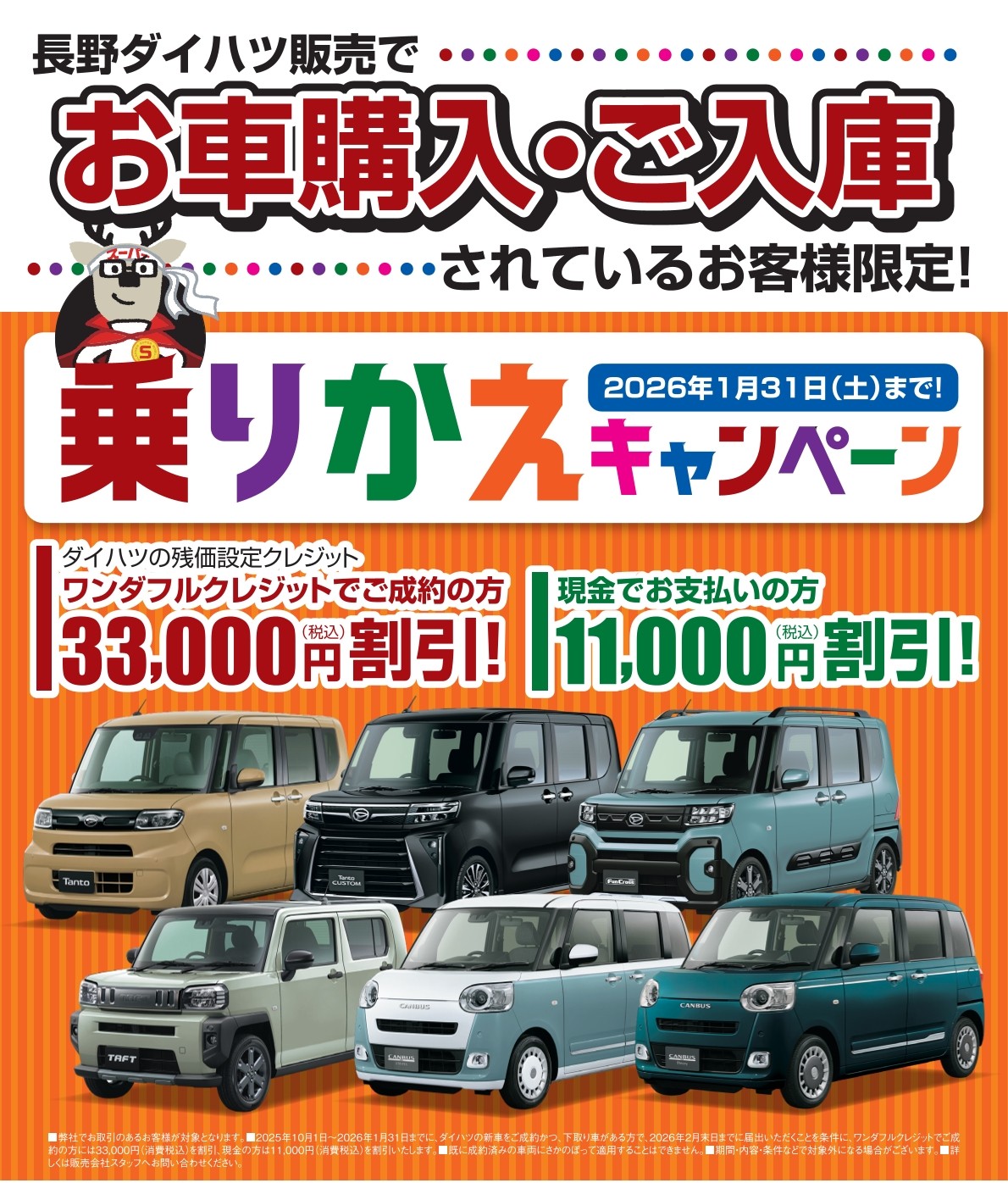 長野ダイハツ販売でお車購入・ご入庫されているお客様限定で