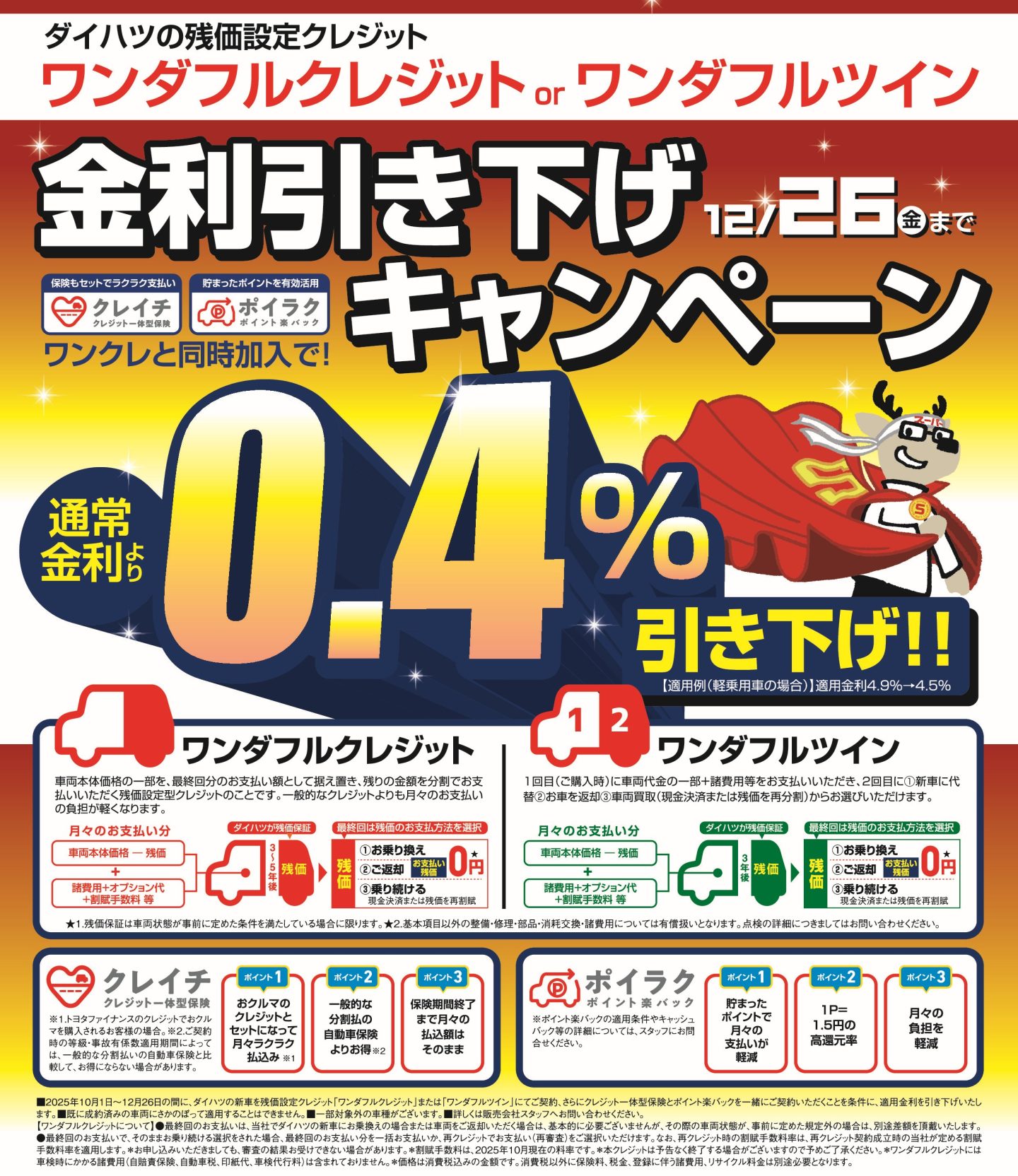 【期間限定】ダイハツ ワンダフルクレジット 特別金利キャンペーン実施中!🎉