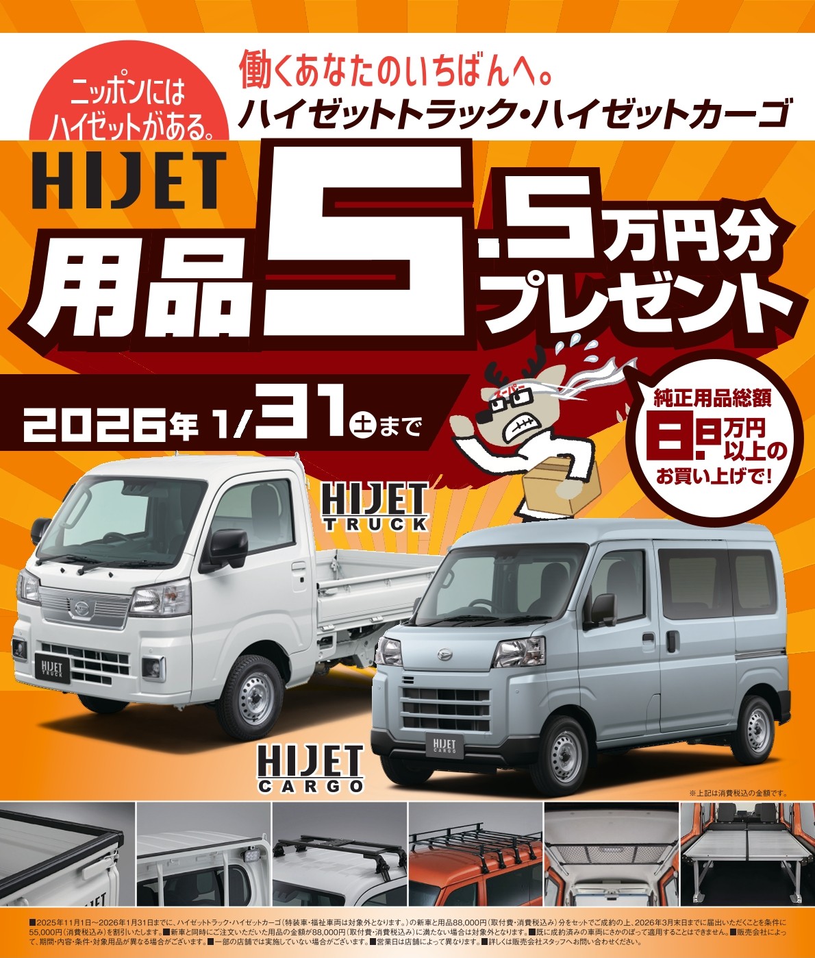 【期間限定】ハイゼットトラック・ハイゼットカーゴ 「純正用品5万円プレゼントキャンペーン」実施のお知らせ