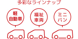 福祉車両、ミニバンもご用意。クルマを所有されている方にもおすすめです。※ご利用いただける車種はステーションによって異なります。