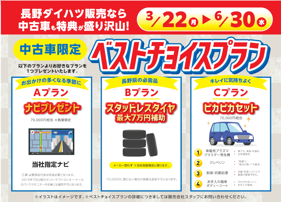 中古車限定 ベストチョイスプラン登場!!(終了致しました)