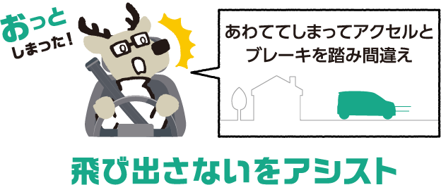 万が一アクセルとブレーキを踏み間違えても飛び出さないよう
