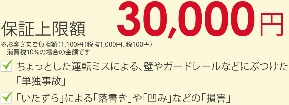 保険請求しにくい少額修理をサポートし、小キズやパンクの保証も付いています。