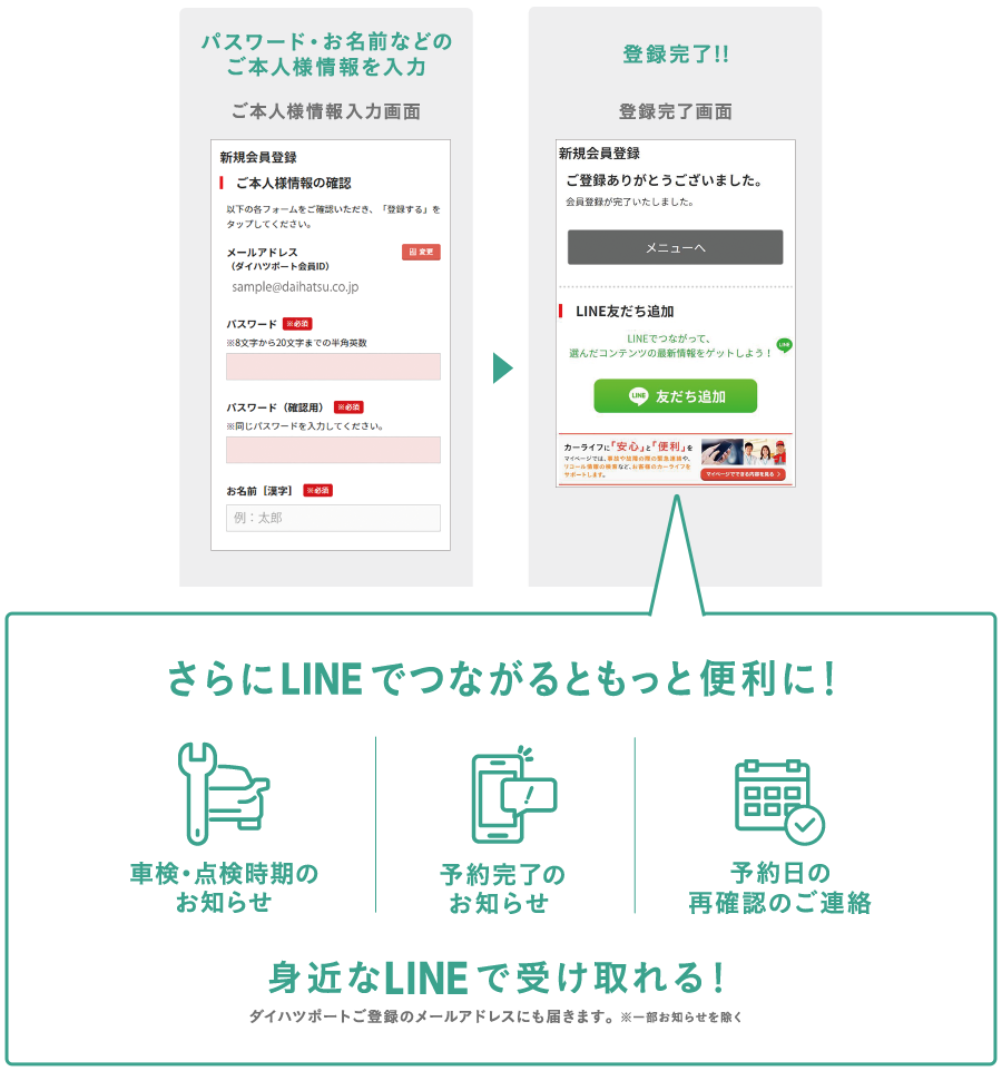 ※迷惑メール対策をしている場合は、予め設定を解除、または@dp.daihatsu.co.jpを受信できるように設定してください